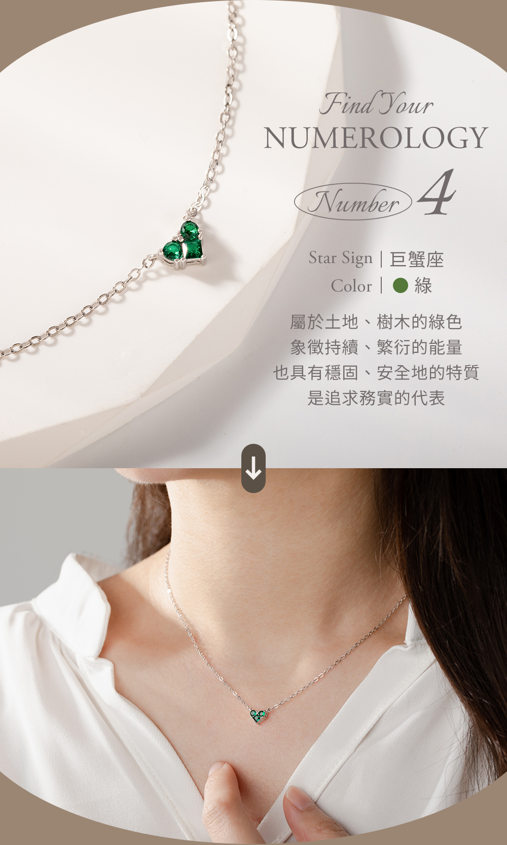 生命靈數No.4執行數 ‧ 幸運心925純銀項鍊-綠