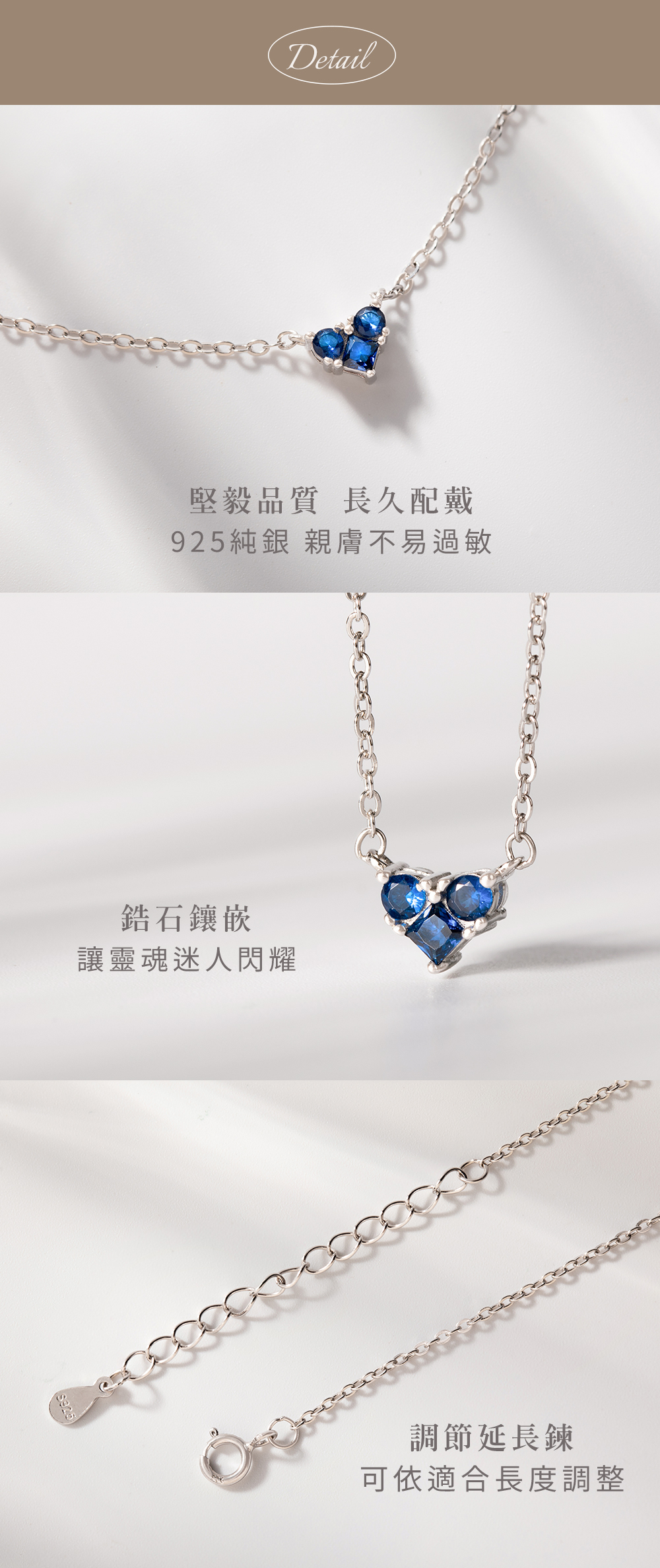 生命靈數No.6奉獻數 ‧ 幸運心925純銀項鍊-靛