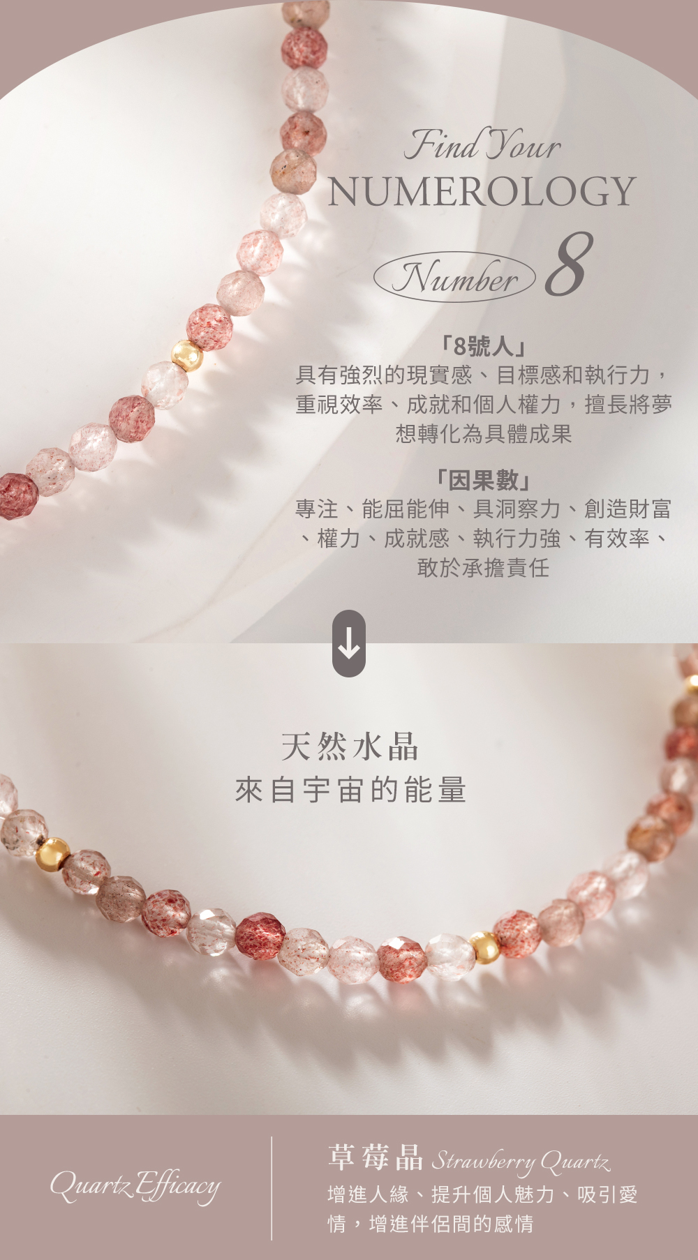 生命靈數No.8-開運水晶手鍊-草莓晶-粉