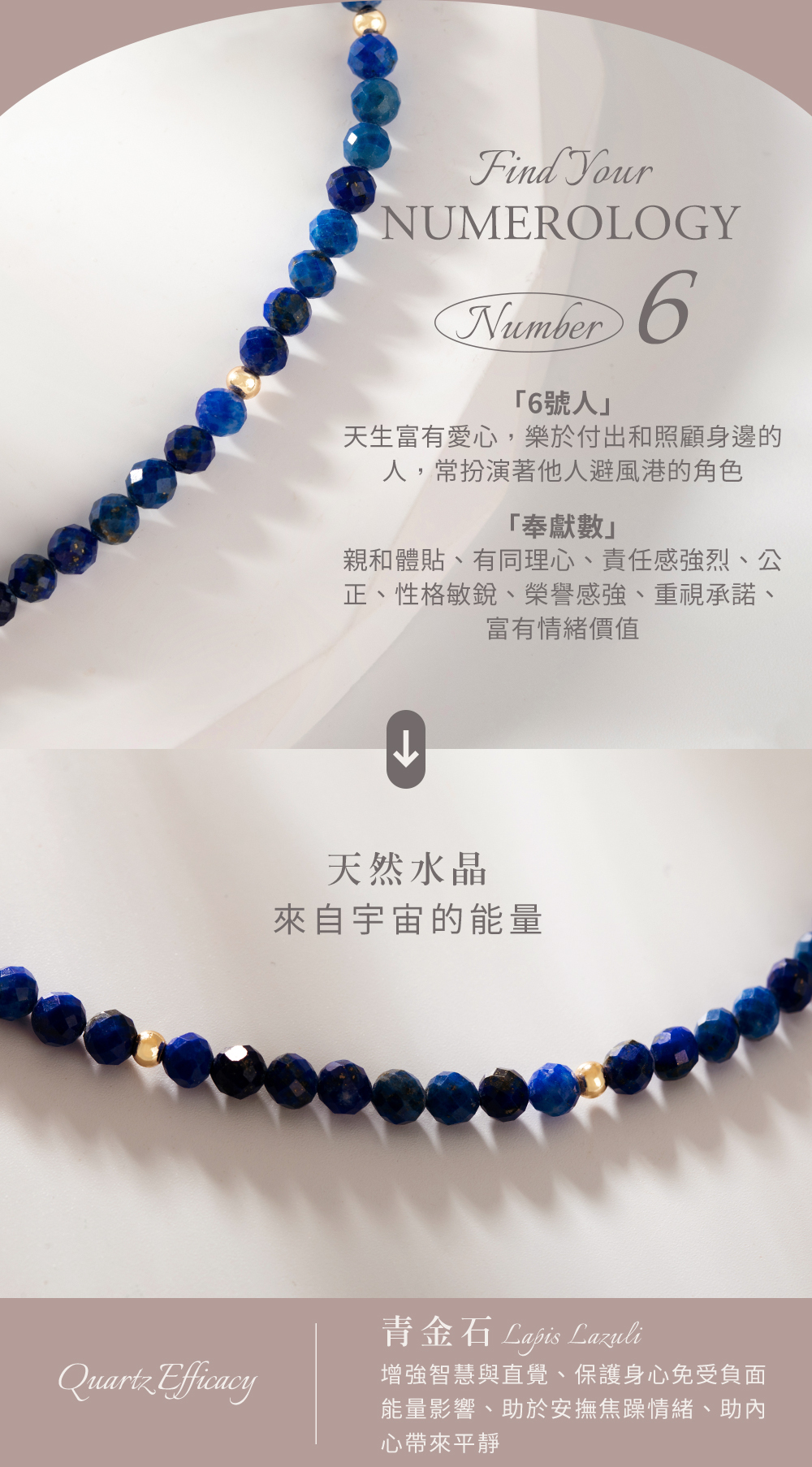 生命靈數No.6-開運水晶手鍊-青金石-靛