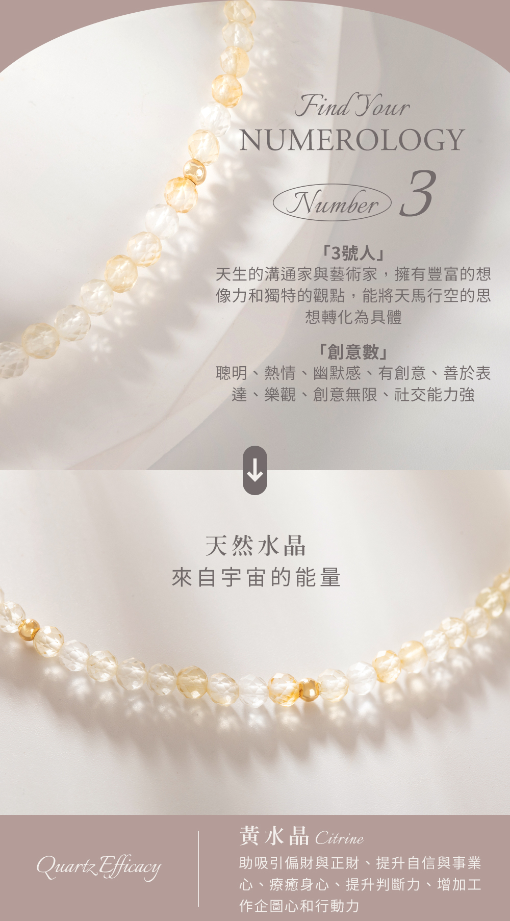 生命靈數No.3-開運水晶手鍊-黃水晶-黃