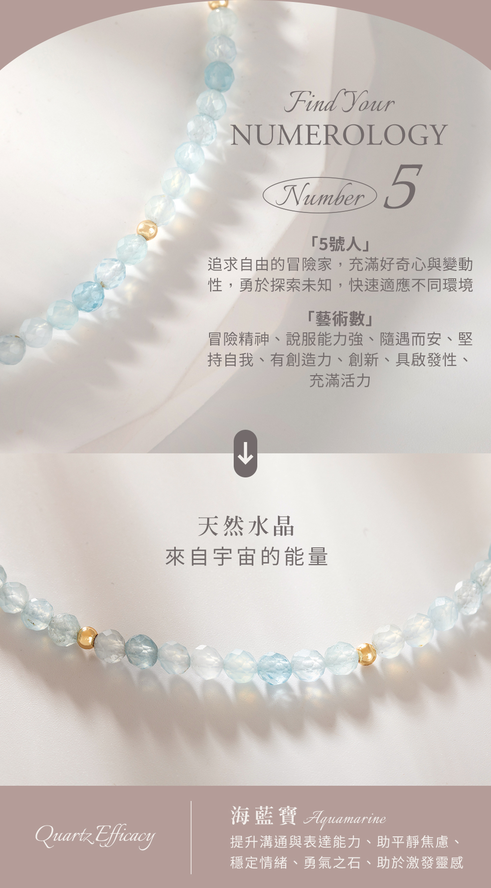 生命靈數No.5-開運水晶手鍊-海藍寶-藍