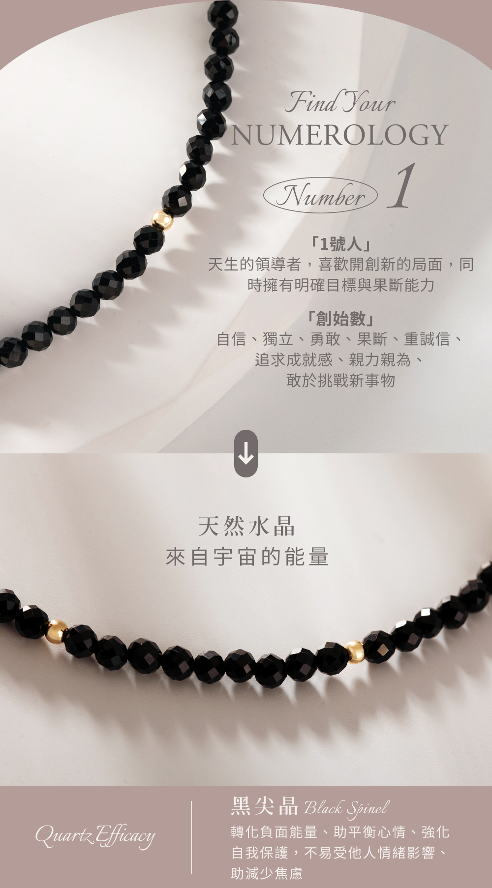 黑尖晶 : 轉化負面能量、助平衡心情、強化自我保護,不易受他人情緒影響、助減少焦慮