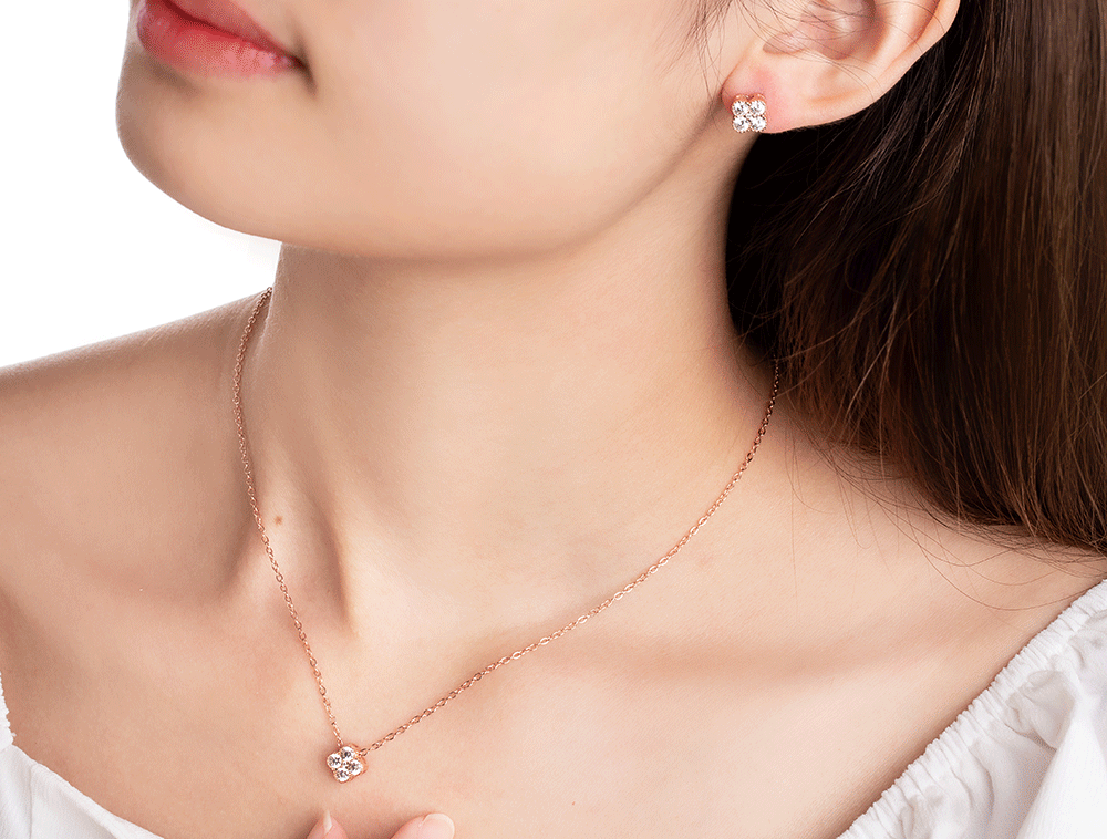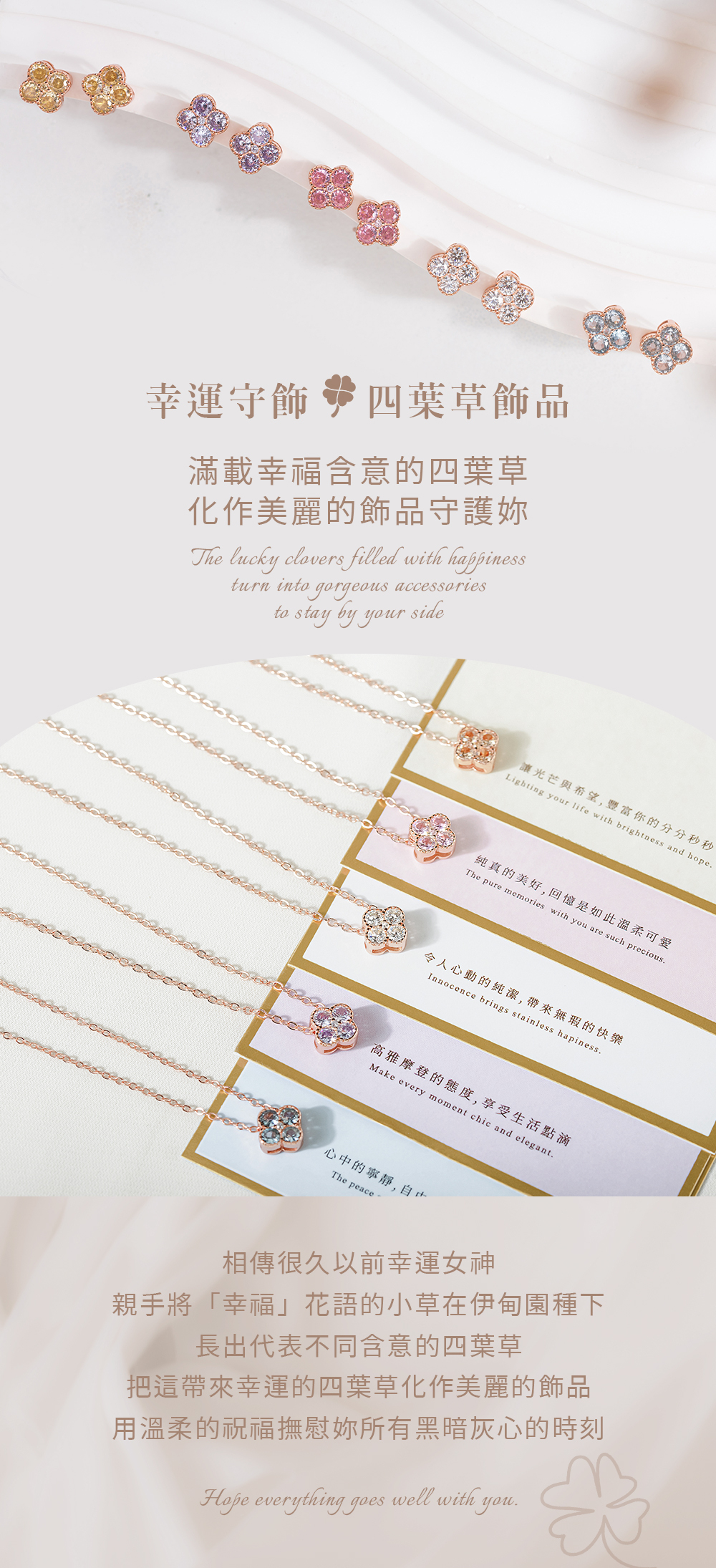 【5色】飾品1+1禮盒-守護幸運草925純銀項鍊+手鍊+耳環-玫瑰金