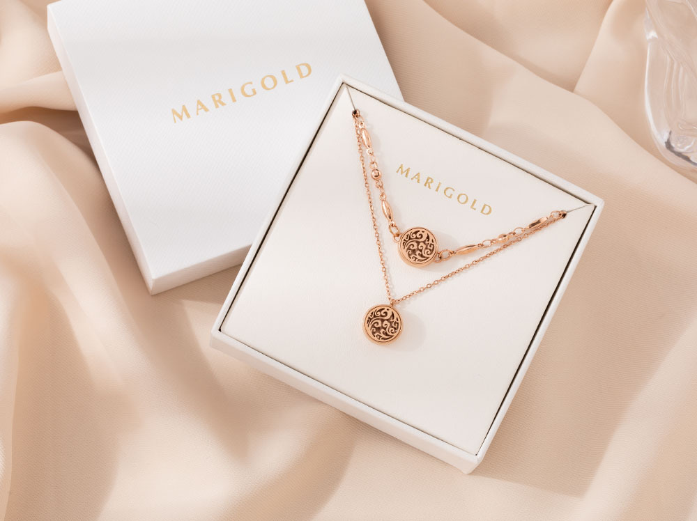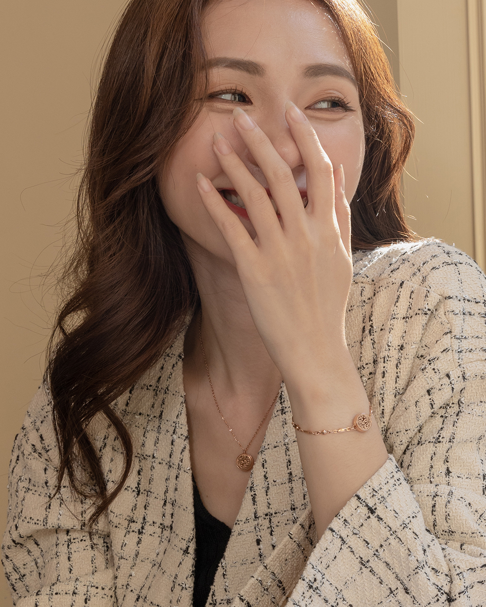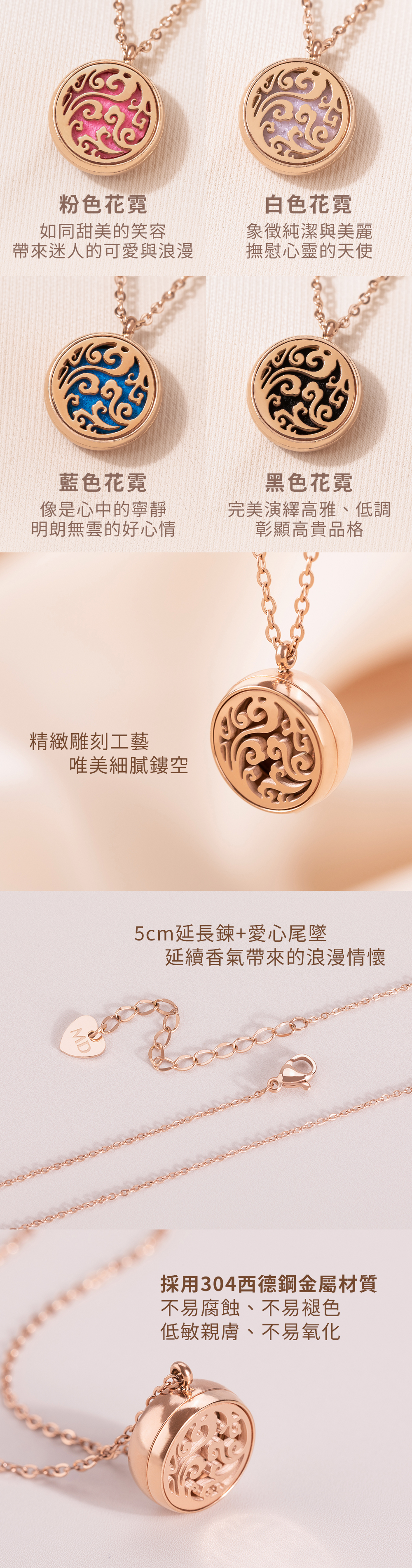 擴香飾品1+1禮盒-雲朵花霓西德鋼項鍊-玫瑰金+手鍊-玫瑰金