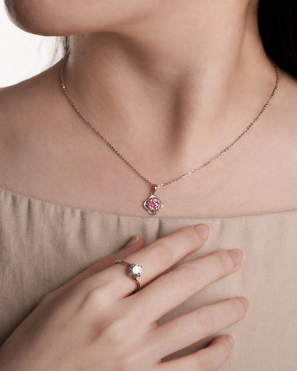 飾品1+1禮盒-命定玫瑰925純銀莫桑鑽項鍊+戒指
