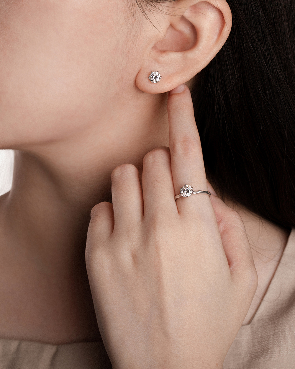 飾品1+1禮盒-白靄之吻925純銀莫桑鑽耳環+戒指