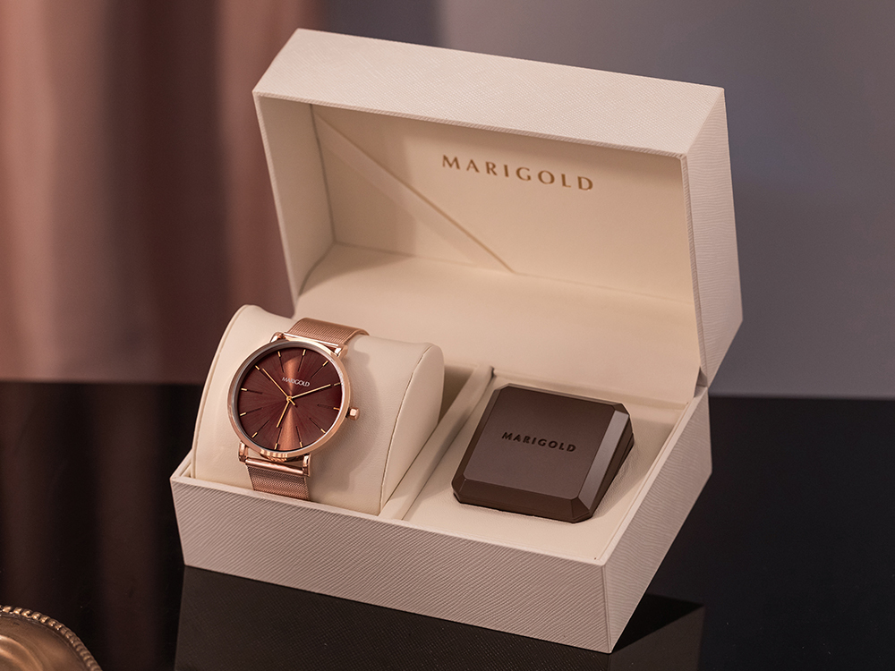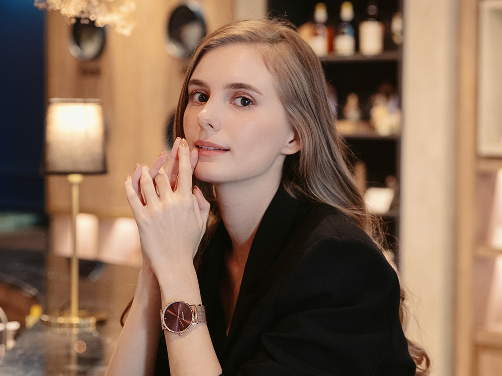 Dawn手錶香膏禮盒-酒紅面玫金框-米蘭玫金 + 1殼4入香膏芯
