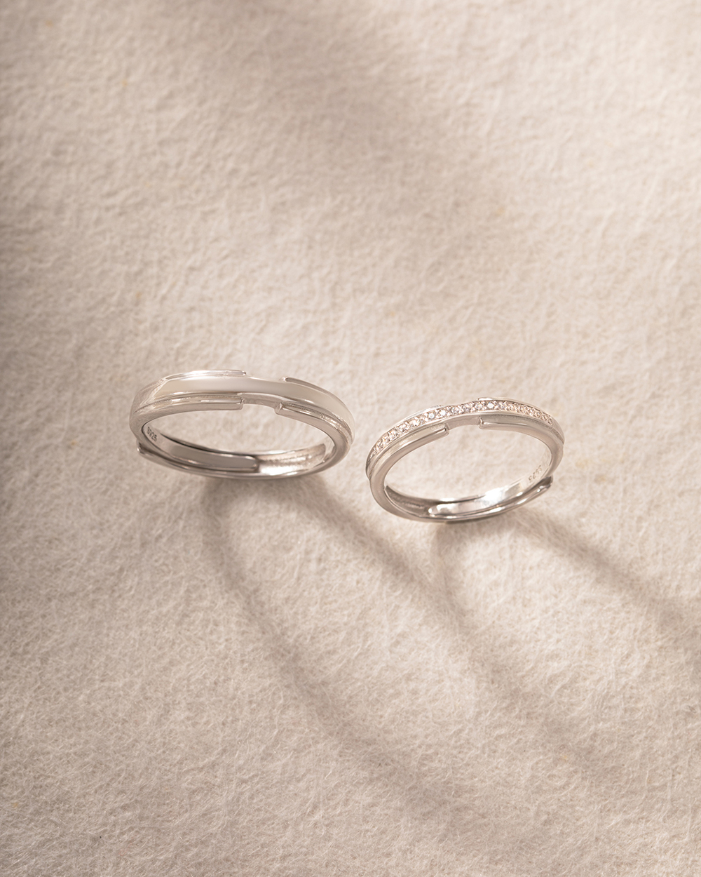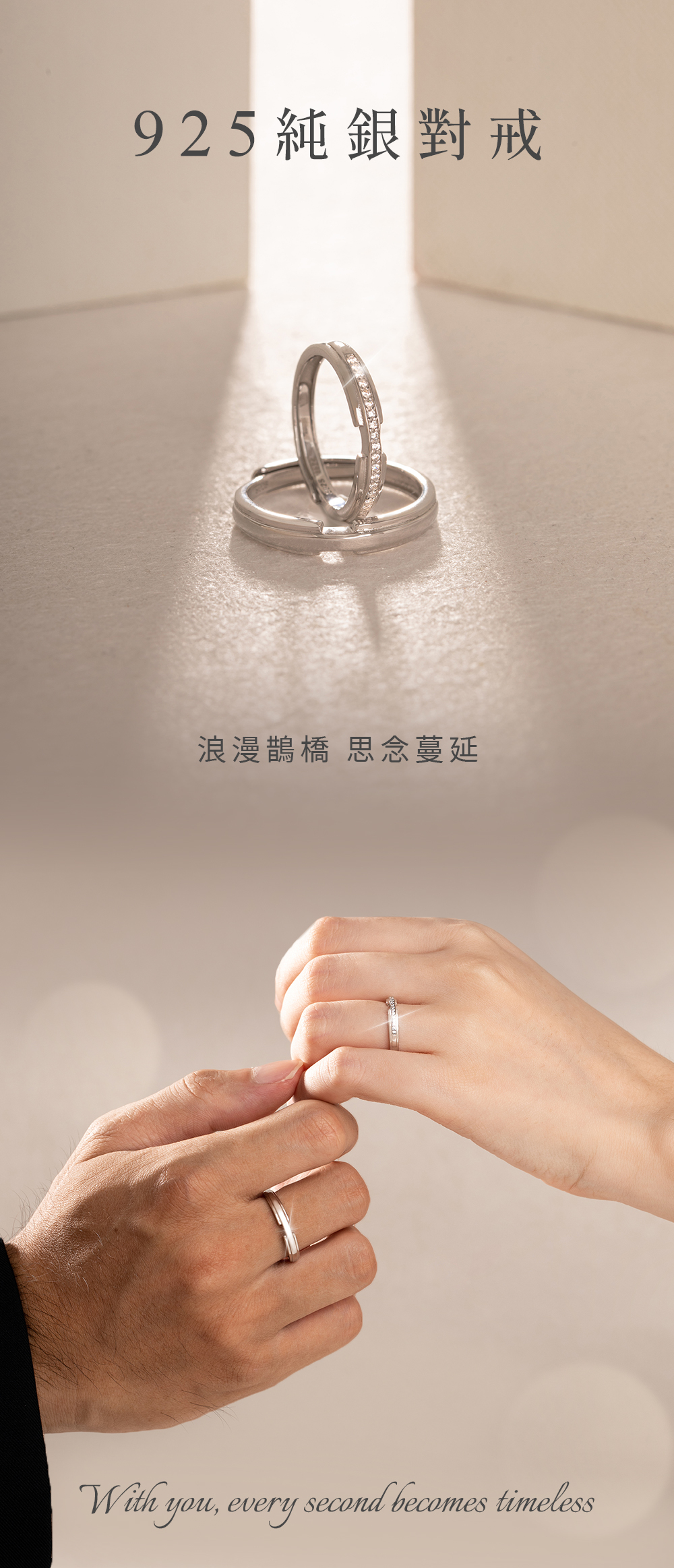 情侶對戒禮盒-鵲橋925純銀可調式戒指-女款-銀 / 男款-銀