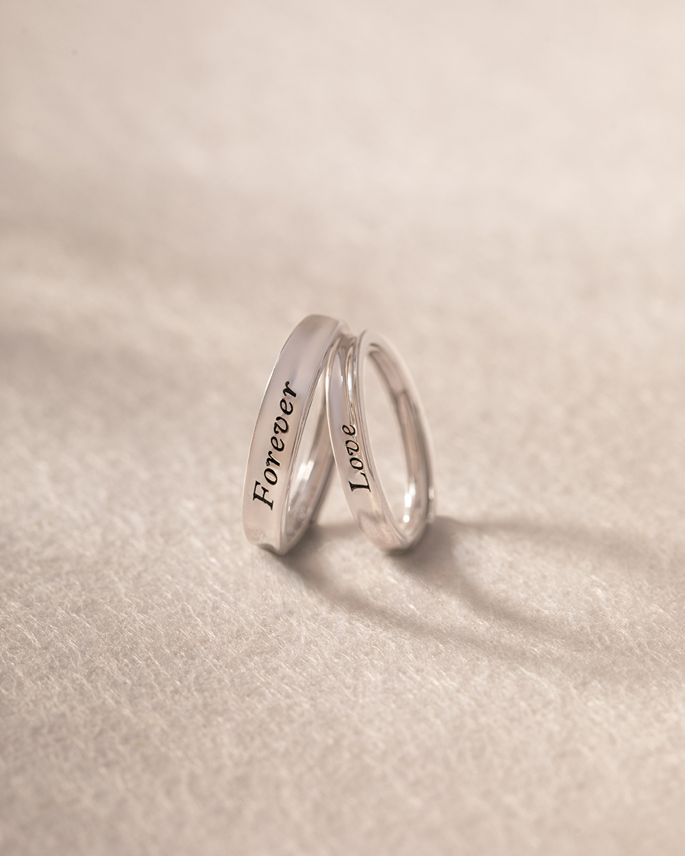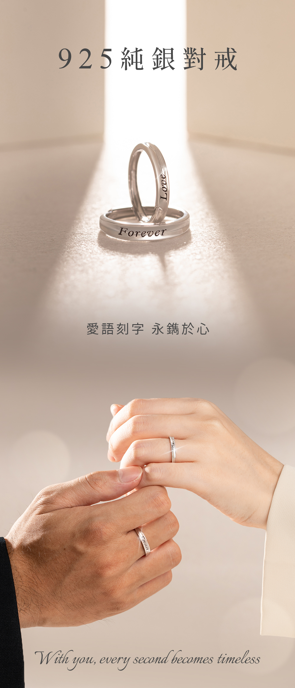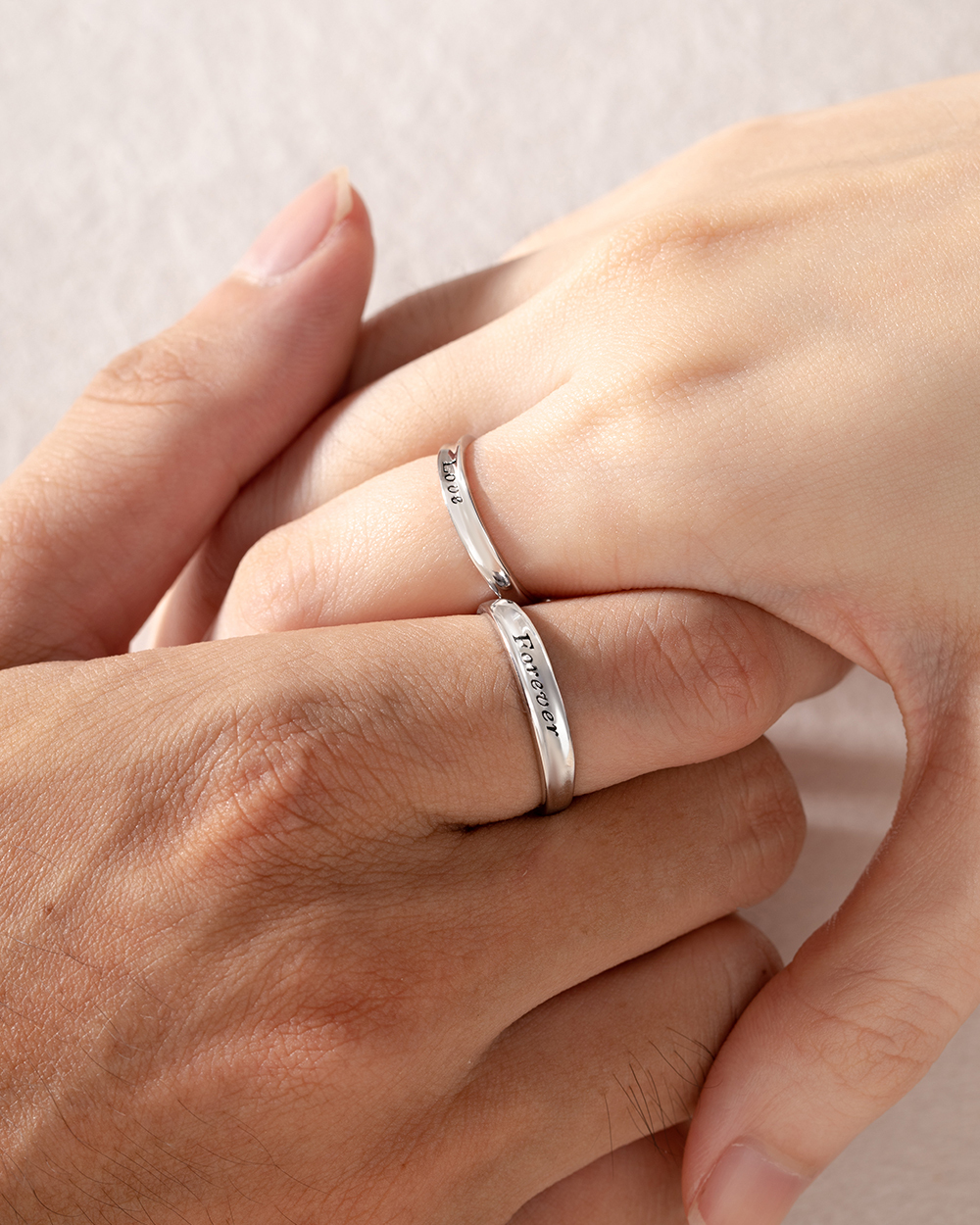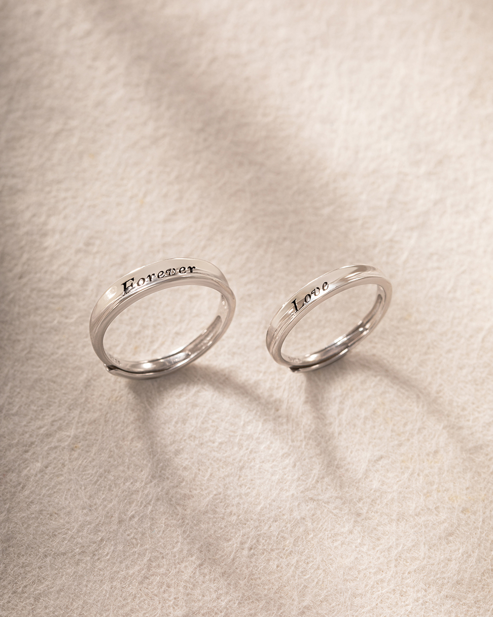 情侶對戒禮盒-永遠愛你925純銀可調式戒指-女款-銀 / 男款-銀