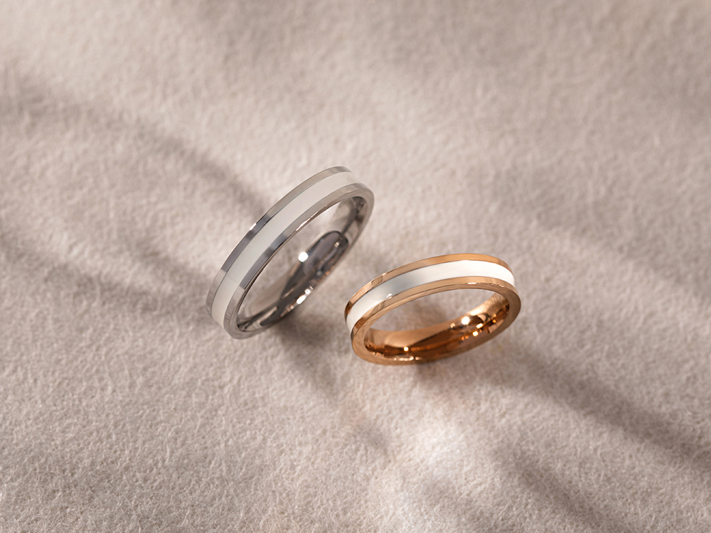 情侶對戒禮盒-經典琺瑯西德鋼戒指-女款-可選色 / 男款-可選色